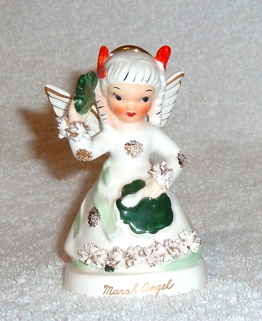 Details about Vintage Napco Birthday Angel March St. Patrick Day Shamrock 1950s Figurine