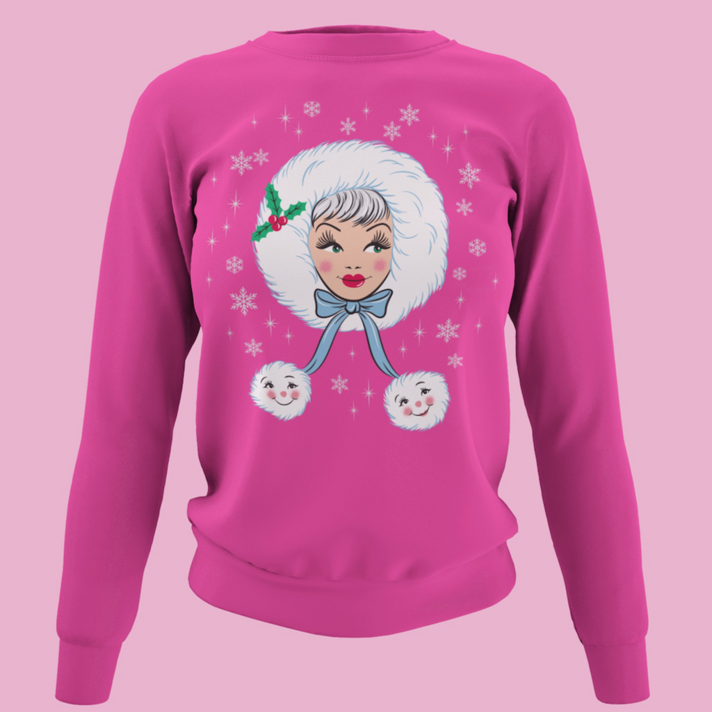 Peppermint Doll Holiday Sugar Plum Pink Kitschmas Sweatshirt